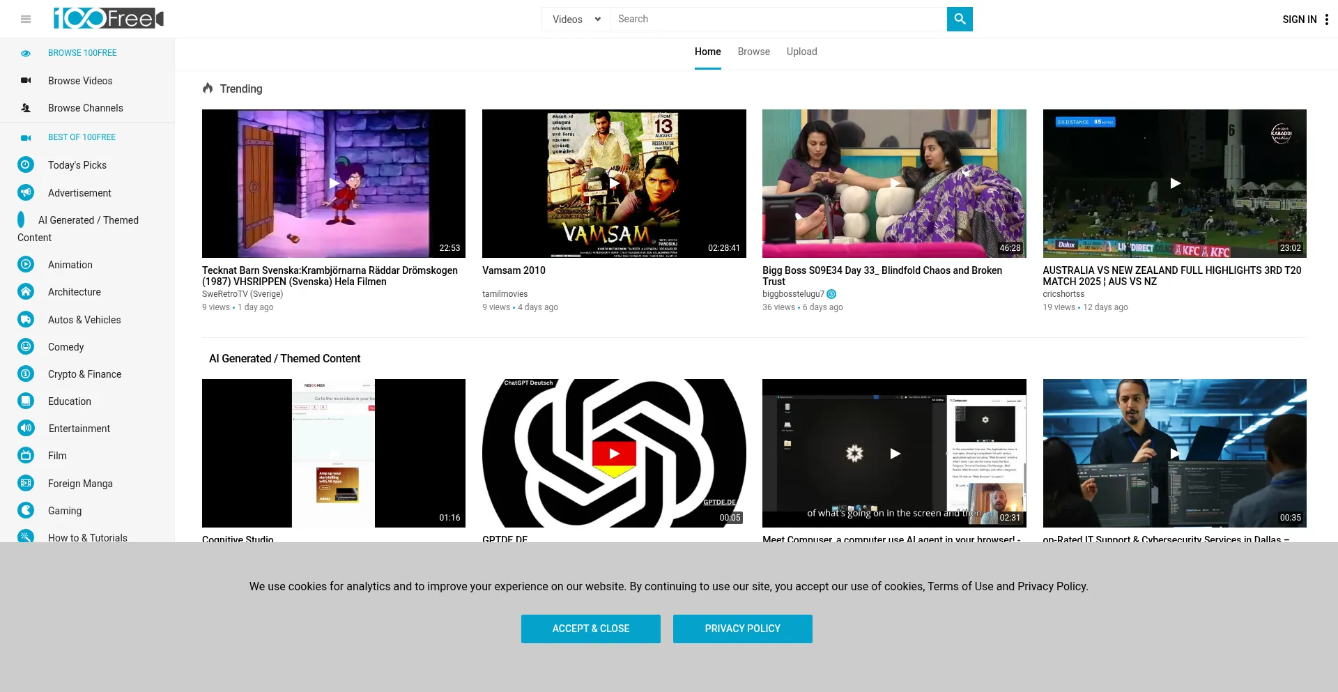 该网站实现符合GDPR或CCPA等隐私法规的cookie同意机制。这表明 100free.com 遵守数据保护标准并为用户提供对个人数据收集实践的控制。