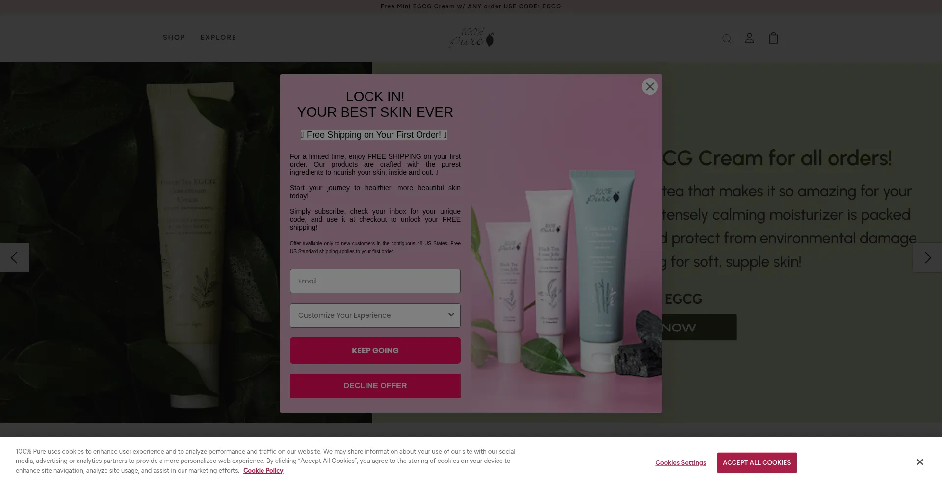 该网站实现符合GDPR或CCPA等隐私法规的cookie同意机制。这表明 100percentpure.com 遵守数据保护标准并为用户提供对个人数据收集实践的控制。