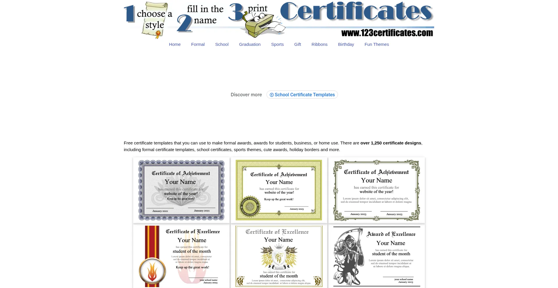 1250+ certificate templates that you can customize, add your own images to, and print all online. Formal designs, fun certificate templates for students, portrait and landscape ...