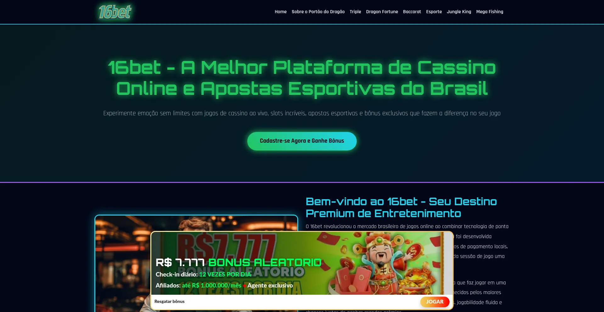 16bet oferece os melhores jogos de cassino online, apostas esportivas ao vivo, bônus exclusivos e entretenimento premium para jogadores brasileiros.