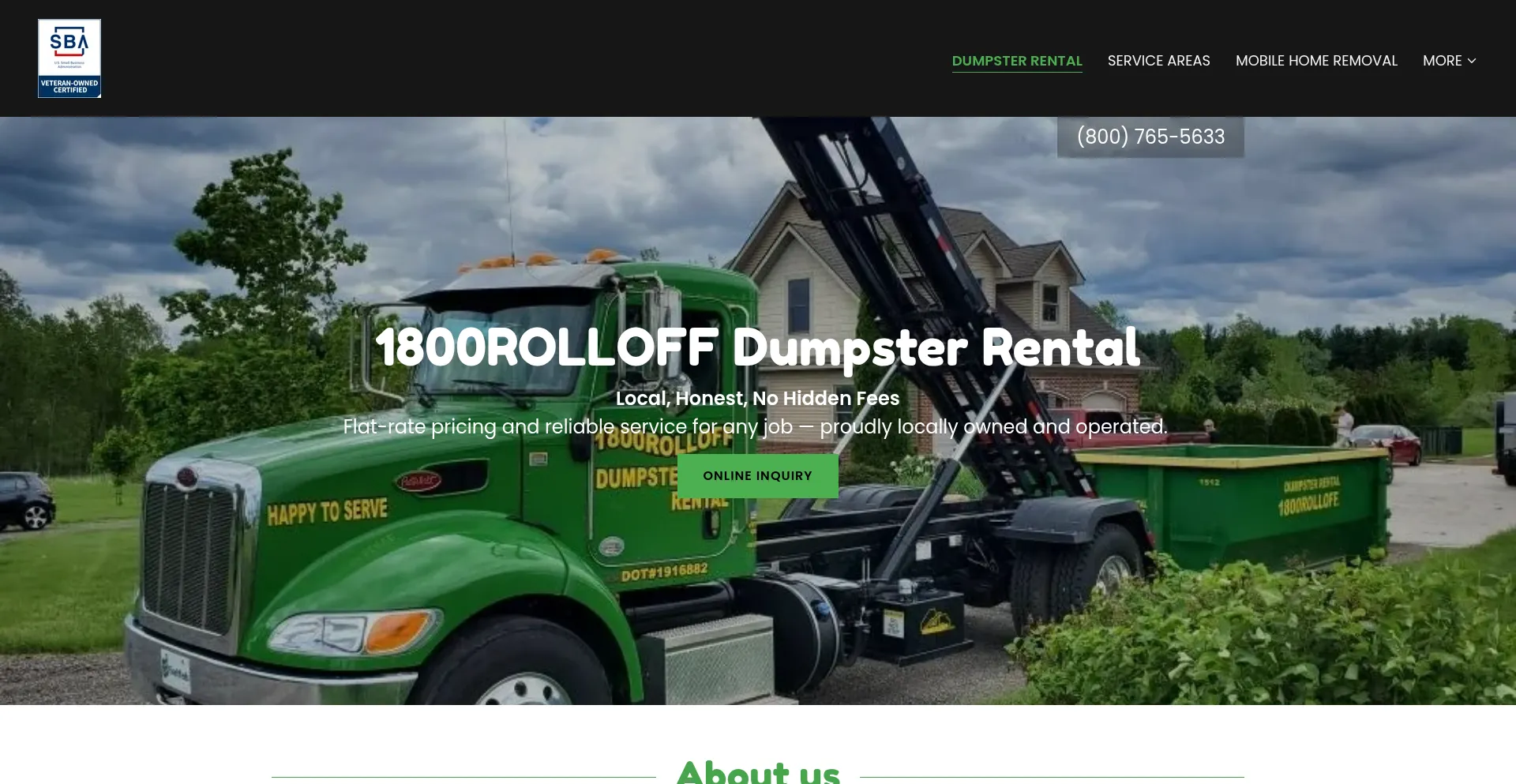Dumpster rentals for residential or commercial jobs. We guarantee the best price. 800-765-5633. Locally owned and family operated. Please, give us a call!