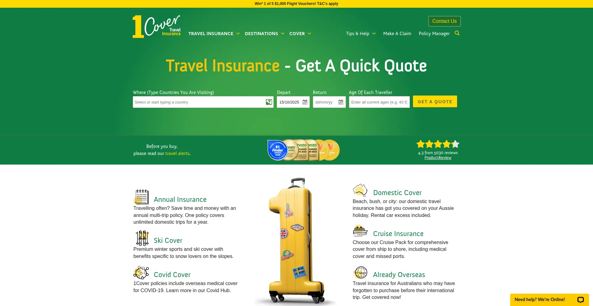 Get 1Cover Travel Insurance for your Trip. Trusted by 2 Million Customers, the Award Winning Cover includes 24/7 Emergency Assistance and more. Get a Quote Now!