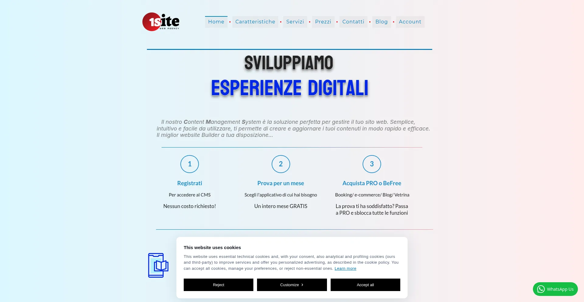 该网站实现符合GDPR或CCPA等隐私法规的cookie同意机制。这表明 1site.it 遵守数据保护标准并为用户提供对个人数据收集实践的控制。
