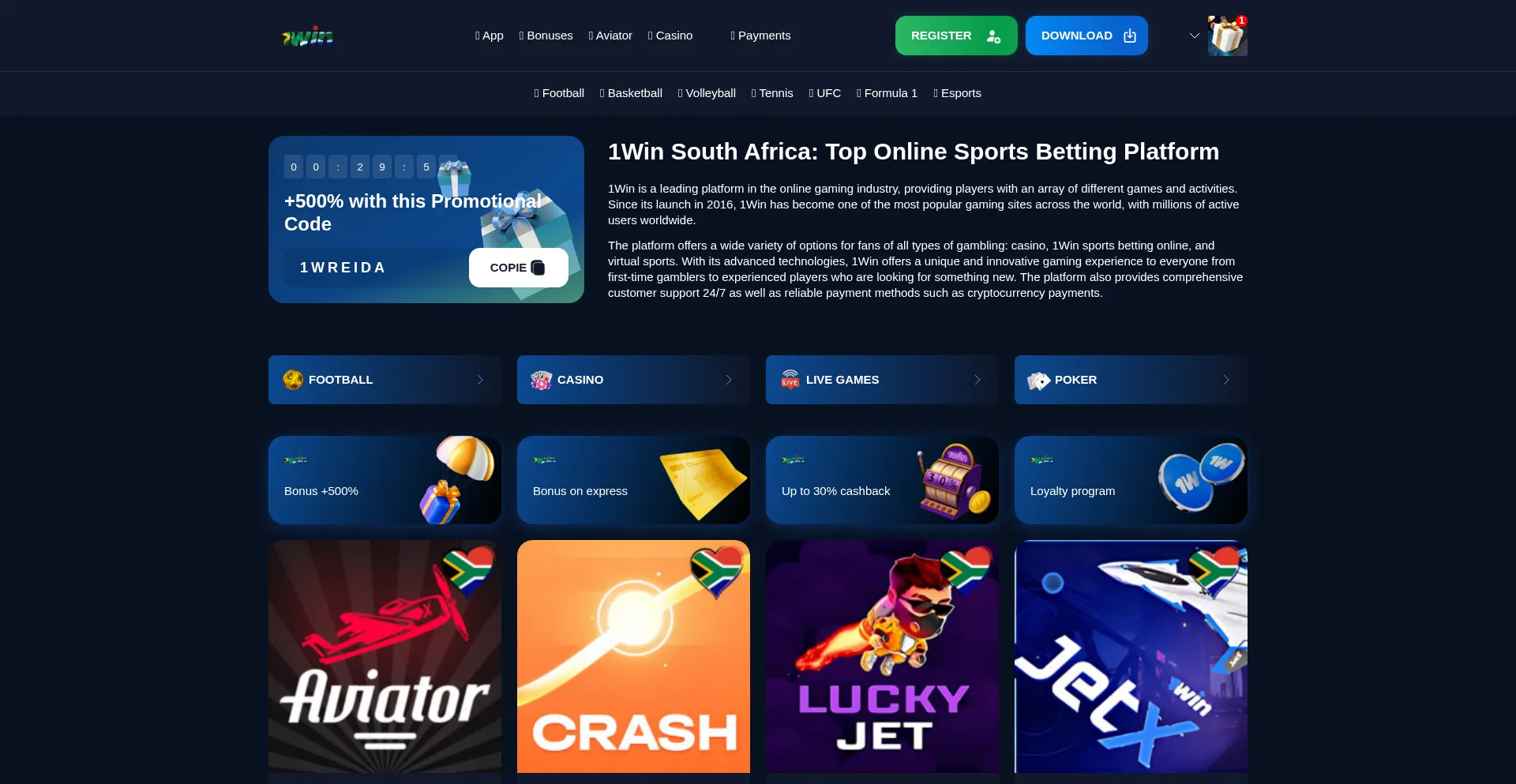 1Win is one of the leading bookmakers in South Africa because it provides the best conditions for betting on sports, esports, virtual sports, as well as casino and live casino. ...