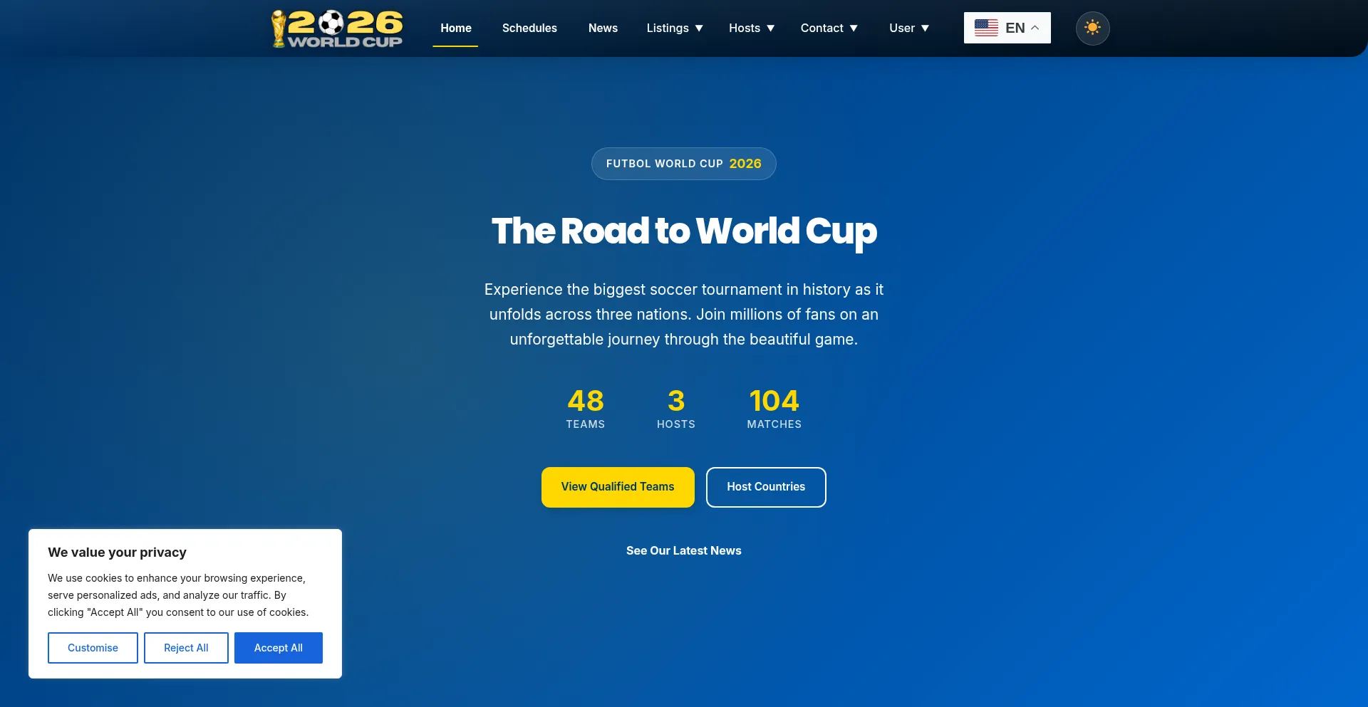 该网站实现符合GDPR或CCPA等隐私法规的cookie同意机制。这表明 2026worldcup.futbol 遵守数据保护标准并为用户提供对个人数据收集实践的控制。