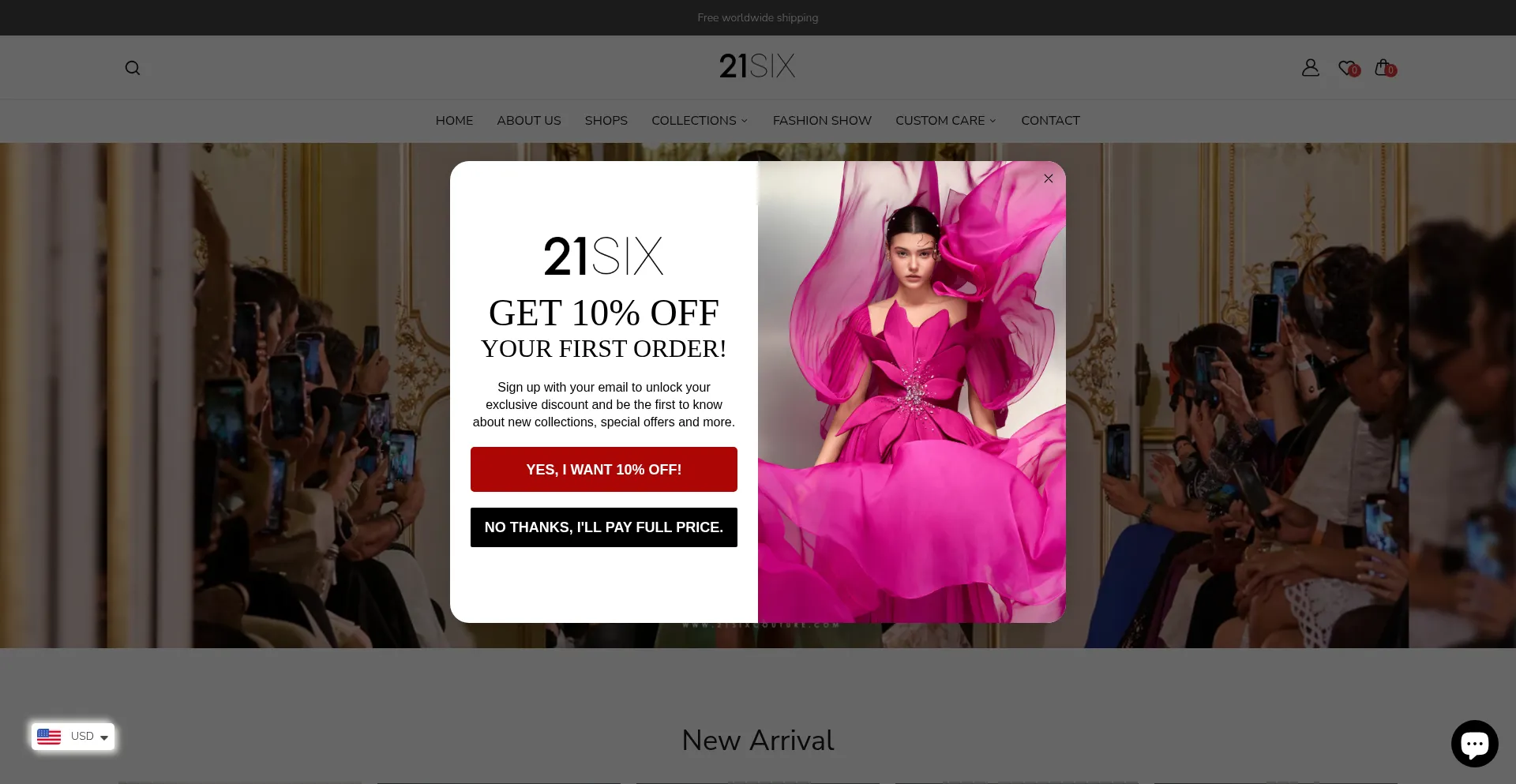 该网站实现数据收集表单,请求个人信息,包括姓名、电子邮件地址、电话号码或其他敏感详细信息。用户应验证 21sixcouture.com 的合法性并在提交个人数据前查看隐私政策。