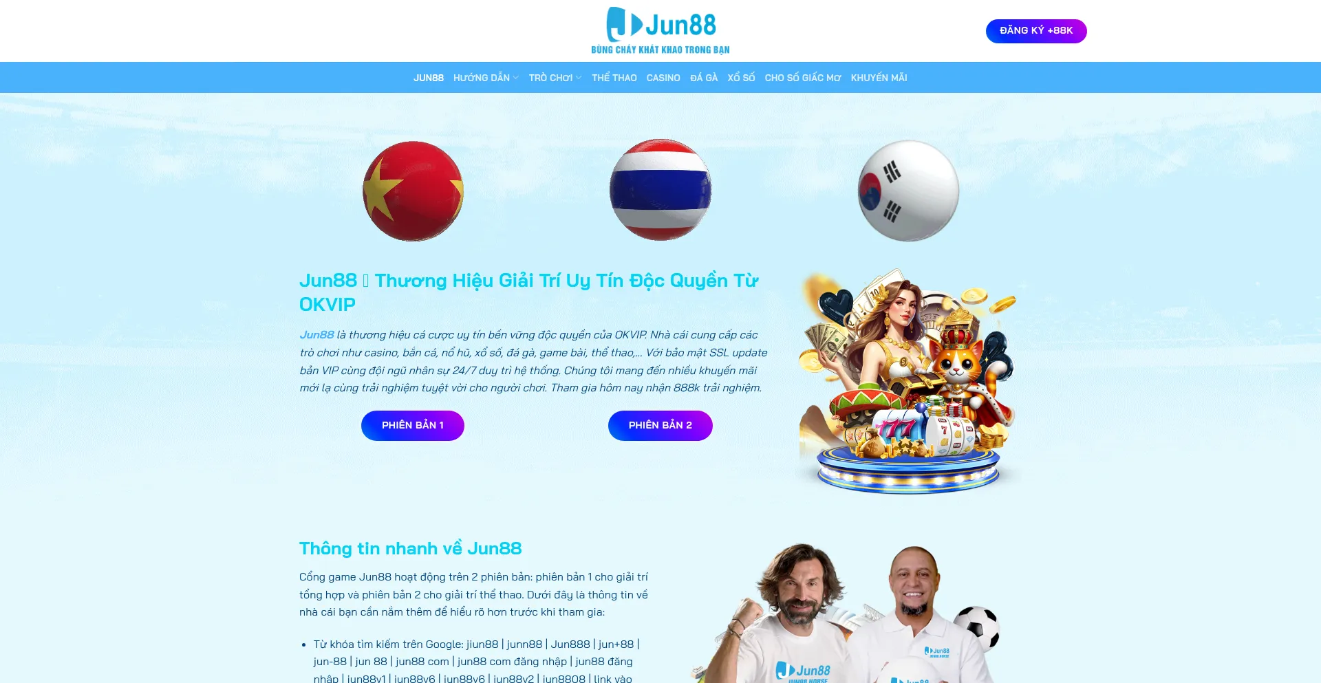 Jun88 là thương hiệu giải trí chủ lực thuộc OKVIP. Sân chơi có hơn 4000 tựa game như Bắn Cá, Sòng Bạc, Quay Hũ, Lô Đề, Poker,..