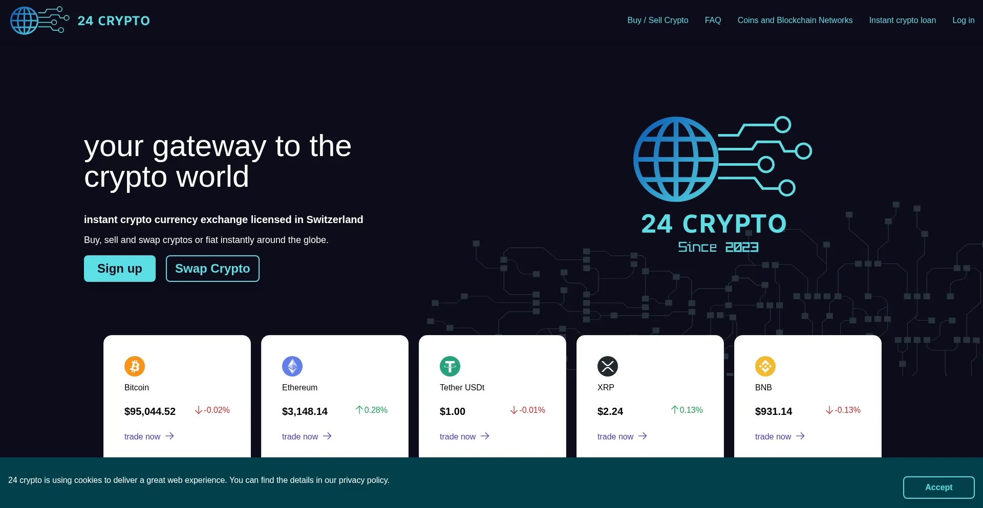 buy crypto instantly at the best price at 24crypto.ch : BTC, ETH,XMR, monero, USDT, TRC20. Exchange crypto without KYC