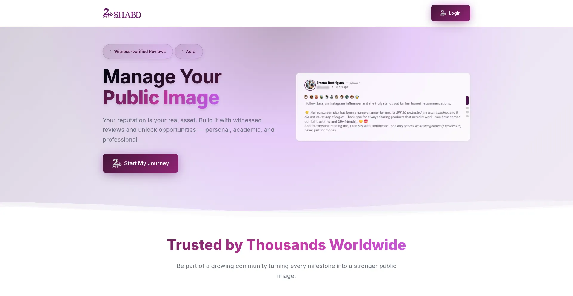 2 Shabd gives you the power to manage your public image with verified reviews and aura.