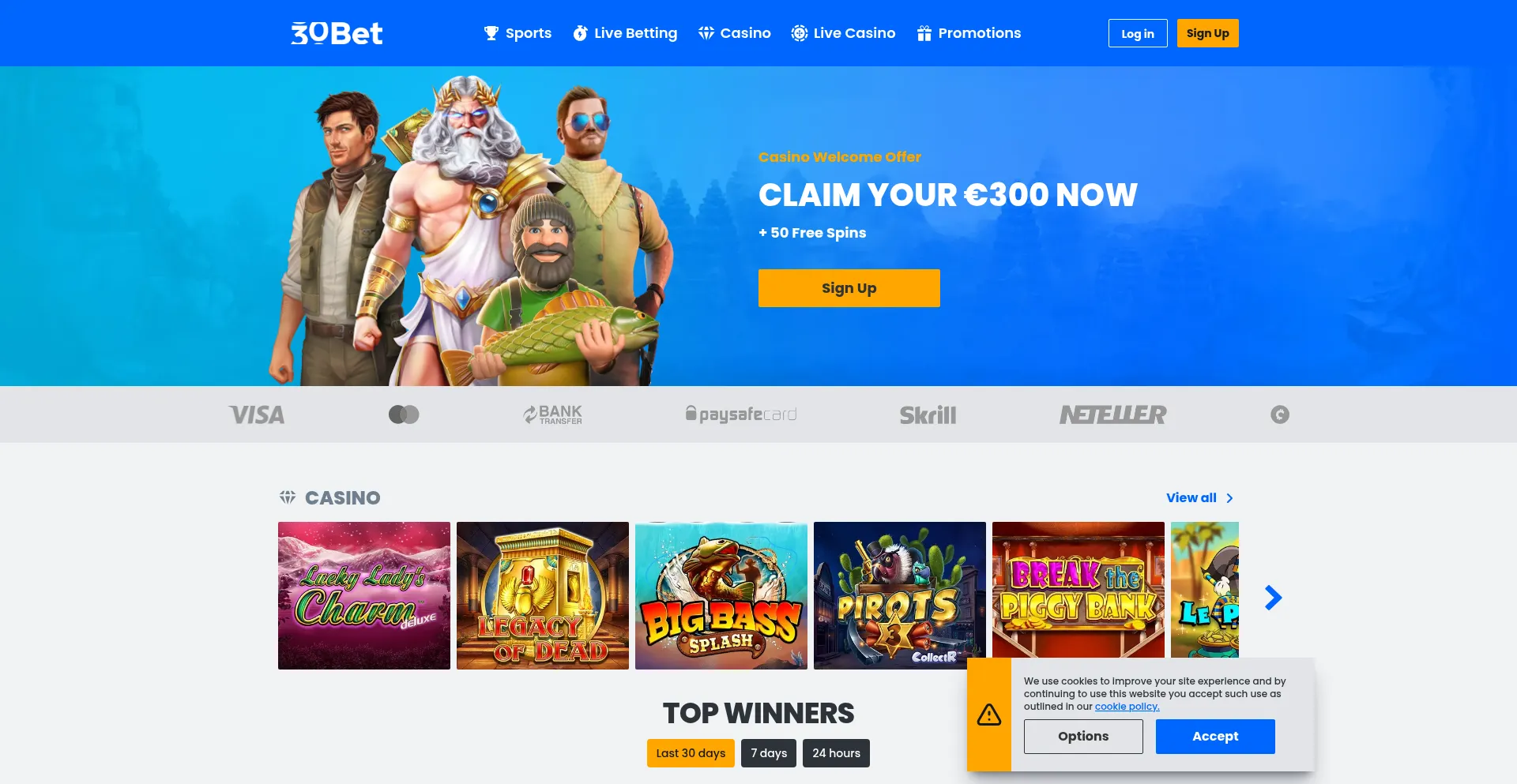 Explore the casino games at 30bet: Over 4000 online slot machines and an incredible casino welcome offer. Play now!