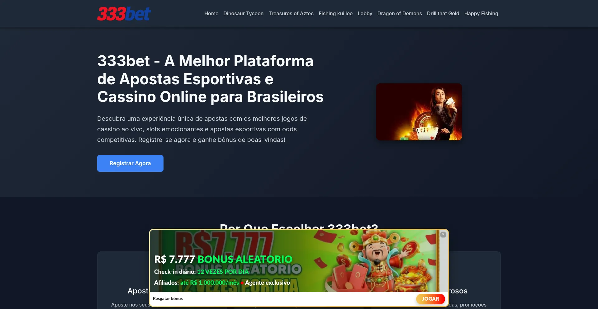 333bet oferece as melhores apostas esportivas, jogos de cassino ao vivo e slots online no Brasil. Registre-se agora e aproveite bônus exclusivos!