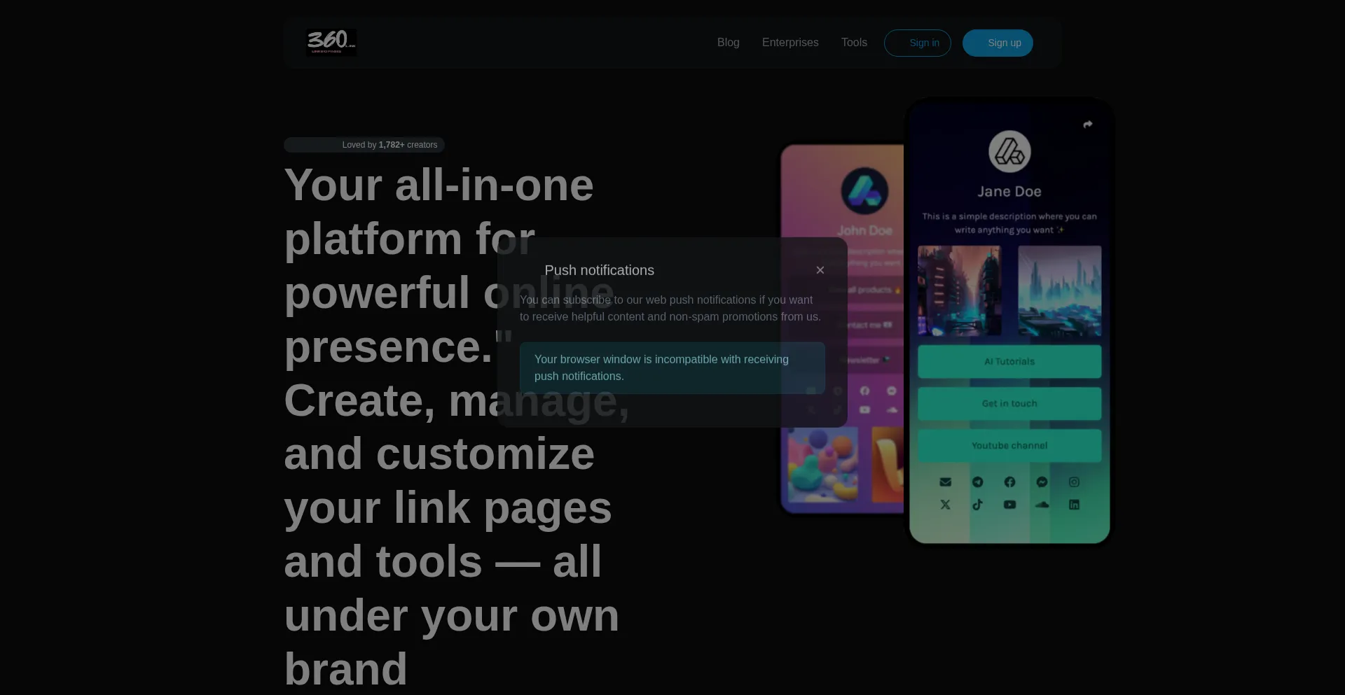 With full customization options, 360l.ink helps you create a professional link hub that fits your identity.