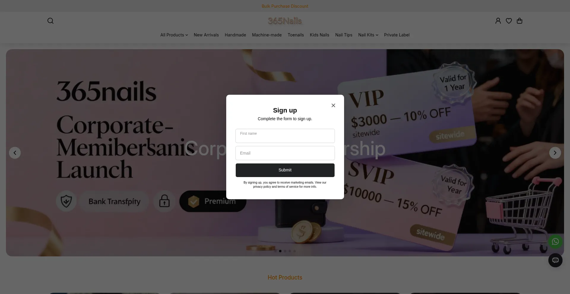 该网站实现数据收集表单,请求个人信息,包括姓名、电子邮件地址、电话号码或其他敏感详细信息。用户应验证 365nails.com 的合法性并在提交个人数据前查看隐私政策。
