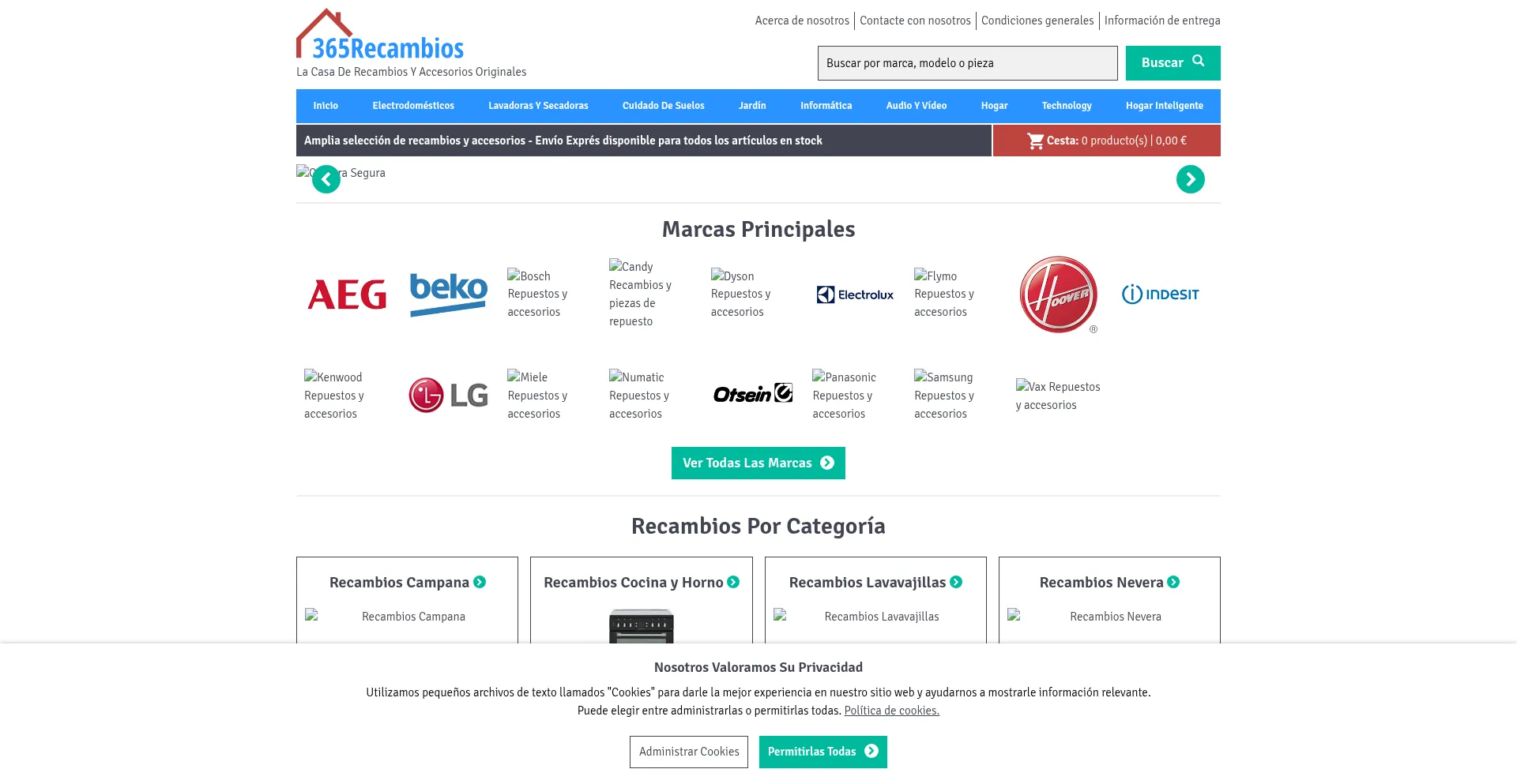 该网站实现符合GDPR或CCPA等隐私法规的cookie同意机制。这表明 365recambios.es 遵守数据保护标准并为用户提供对个人数据收集实践的控制。