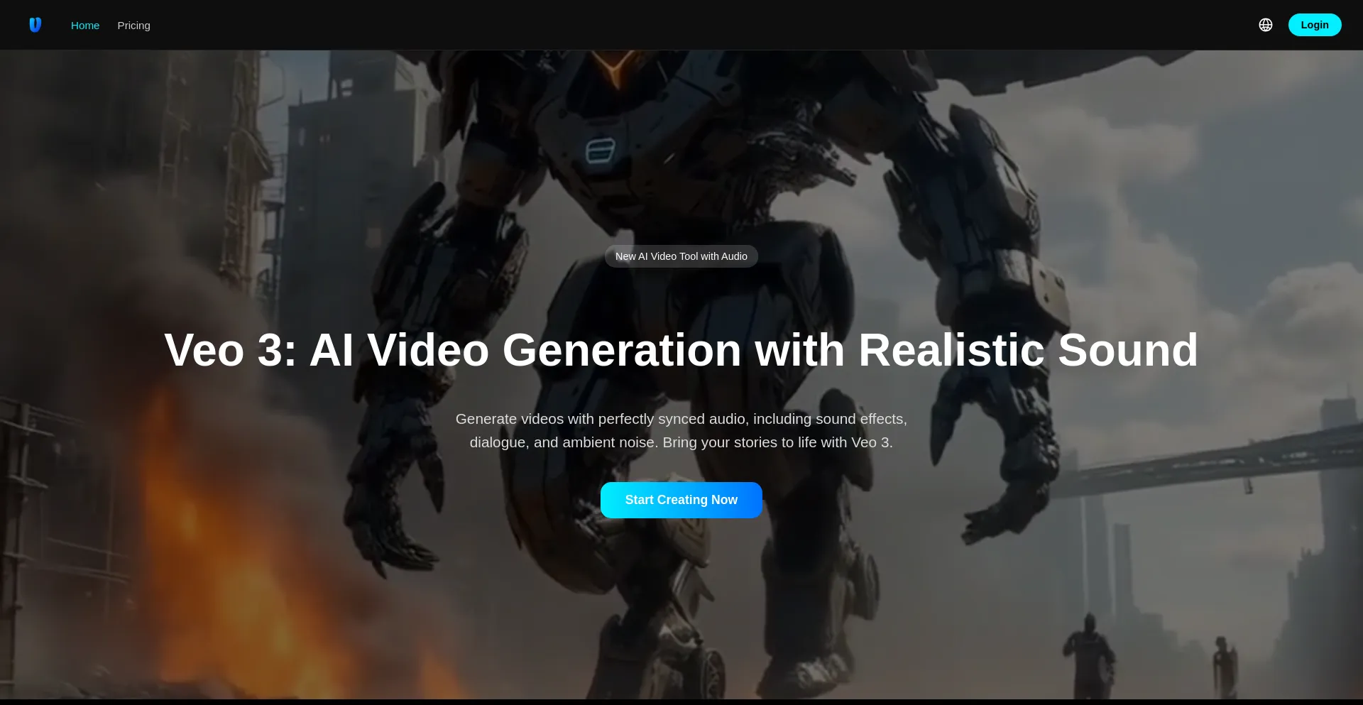 Veo 3 AI Video Generator with synchronized audio. The latest AI video generator tool that adds sound effects, dialogue, and ambient noise.