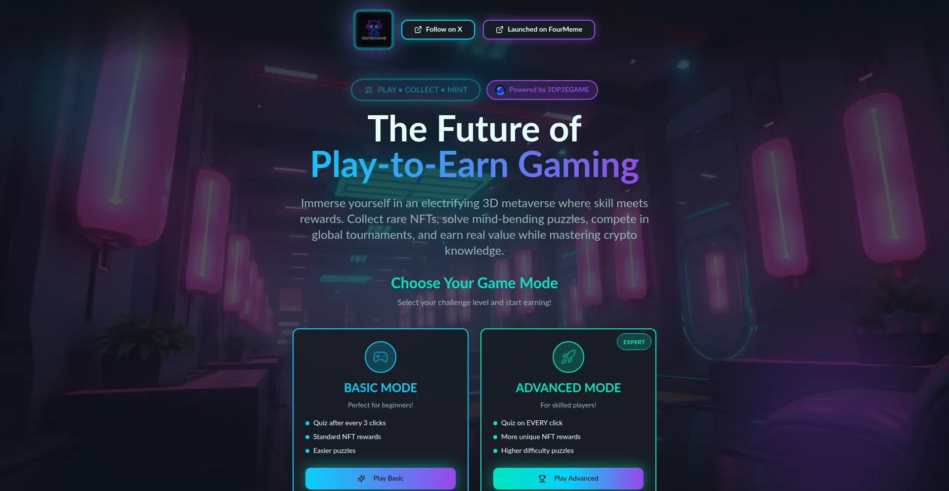 Immersive 3D play-to-earn game powered by 3DP2EGAME token. Learn, collect rare items, and mint them as NFTs! Educational gaming meets blockchain.