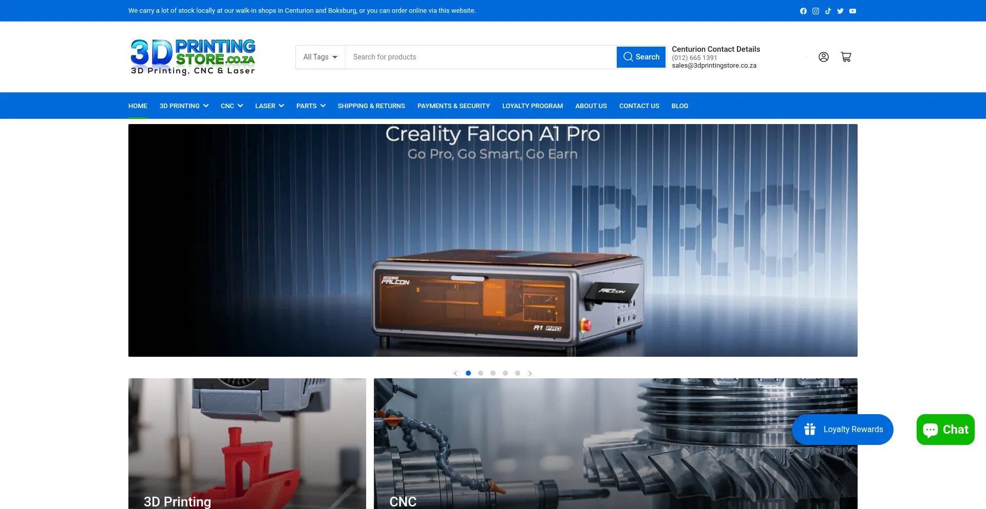 网站上存在社交媒体链接表明 3dprintingstore.co.za 在社交媒体上维护官方账户,这是可信度和参与度的积极信号。