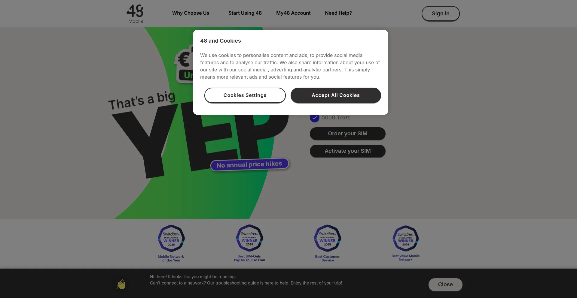 该网站实现符合GDPR或CCPA等隐私法规的cookie同意机制。这表明 48.ie 遵守数据保护标准并为用户提供对个人数据收集实践的控制。