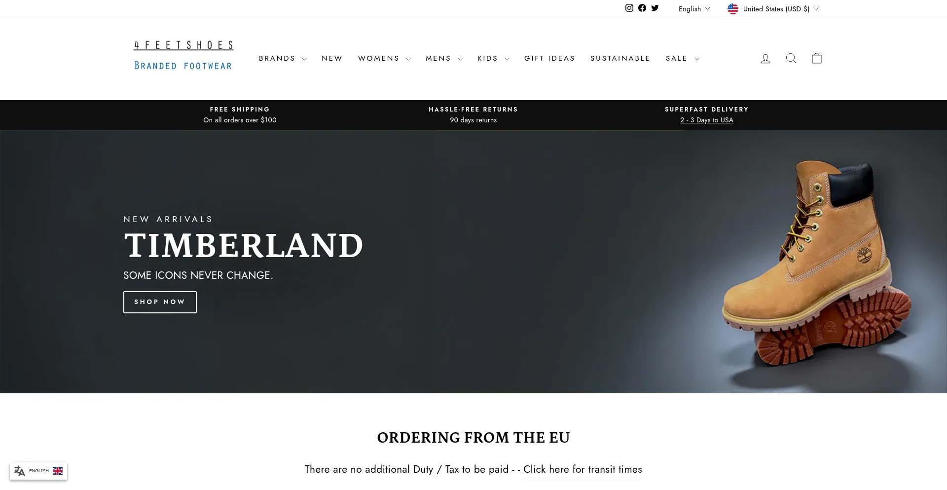 网站上存在社交媒体链接表明 4feetshoes.com 在社交媒体上维护官方账户,这是可信度和参与度的积极信号。