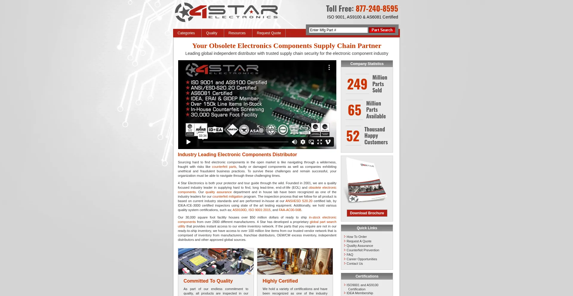 4 Star Electronics is an industry leading ISO 9001:2008 AS9120A certified electronic components distributor specializing in discontinued & obsolete electronic components.