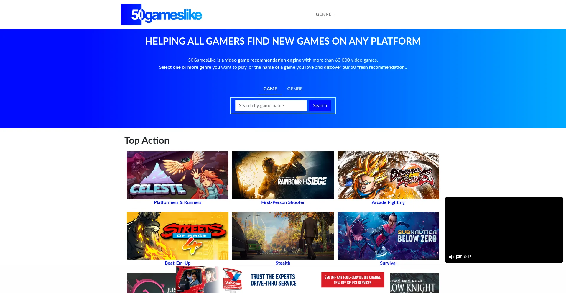 Find the best games by types among 60 000 with the best AI powered game discovery engine