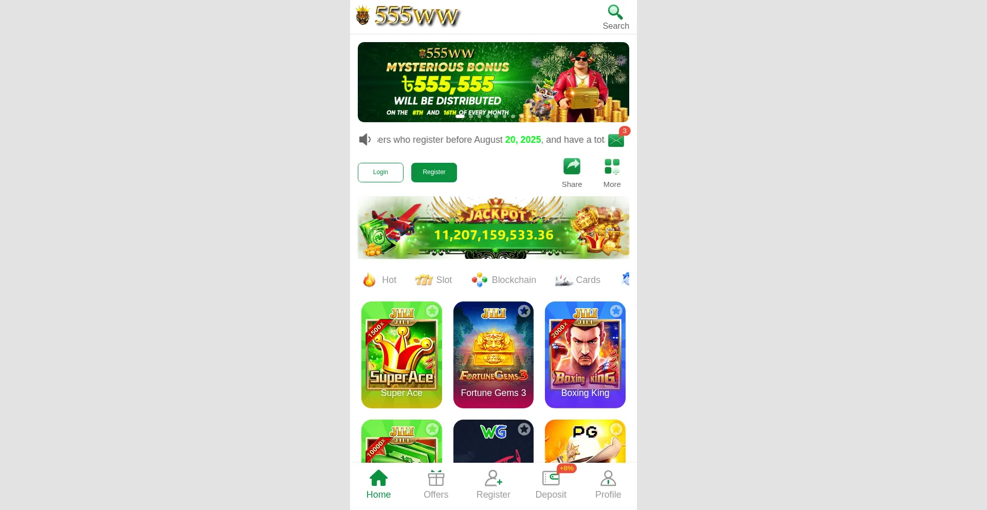 Users who register before August 20, 2025, and have a total deposit amount of 100.00 BDT or more will have the chance to win up to 5,555,555 BDT in cash prizes.