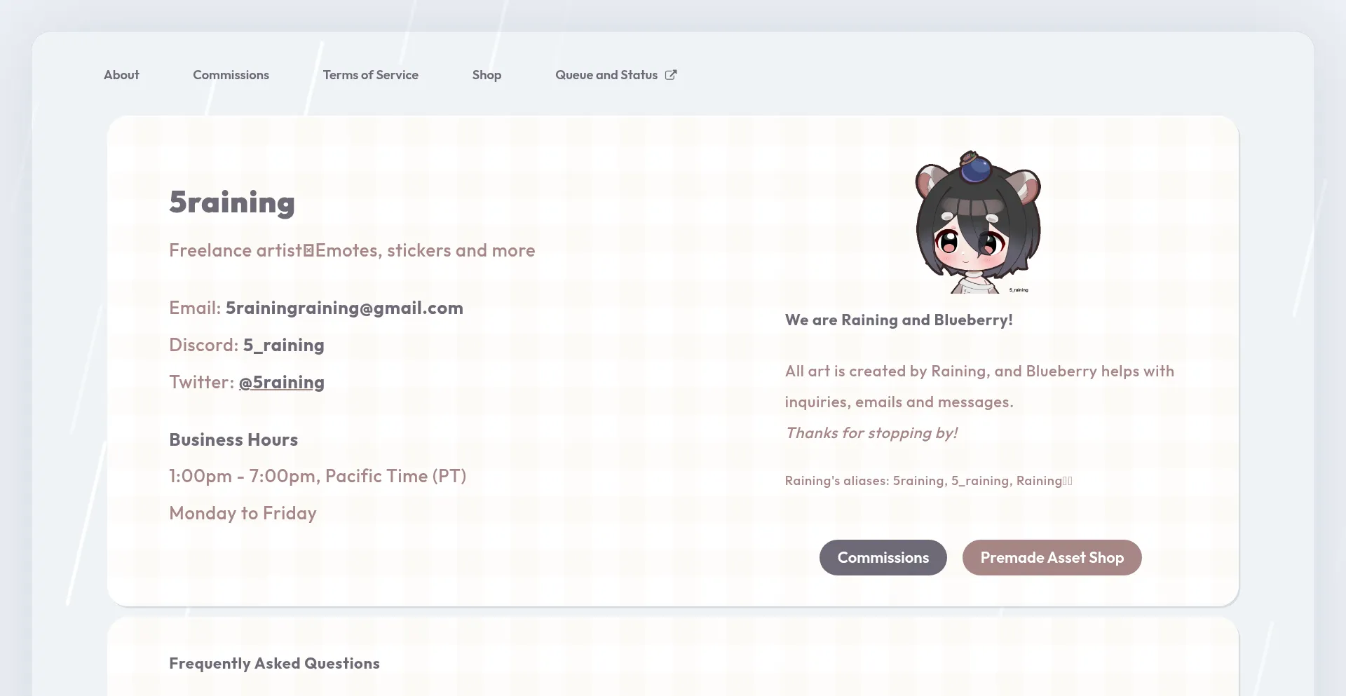 5raining is a sticker/emote artist with YCH emote bases. Custom animated and static emotes also available. Aliases: Raining, 5_raining, Raining下雨