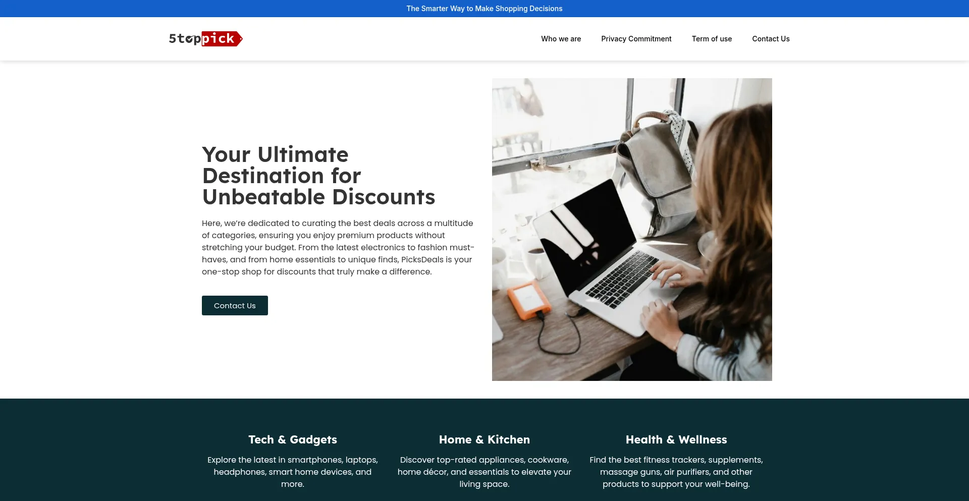 分析表明 5toppick.com 作为电子商务平台运营,促进商品或服务的在线交易。该网站实现了购物车功能、支付处理系统和产品目录功能,这些是商业零售运营的典型特征。