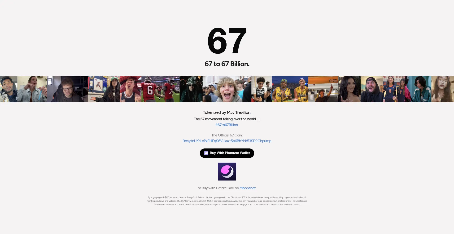 67: #67to67Billion 🌎 The Official 67 Coin: 9AvytnUKsLxPxFHFqS6VLxaxt5p6BhYNr53SD2Chpump