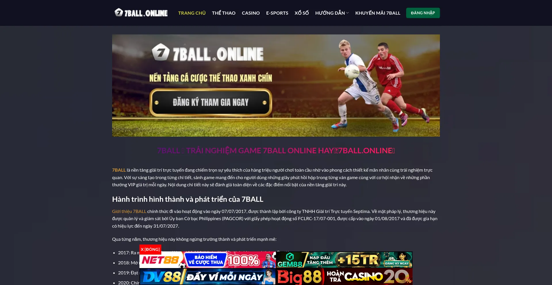 7BALL mang đến trải nghiệm giải trí hoàn hảo với bộ sưu tập hơn 700 trò chơi. Khám phá các chương trình khuyến mãi và dịch vụ hỗ trợ kh�...