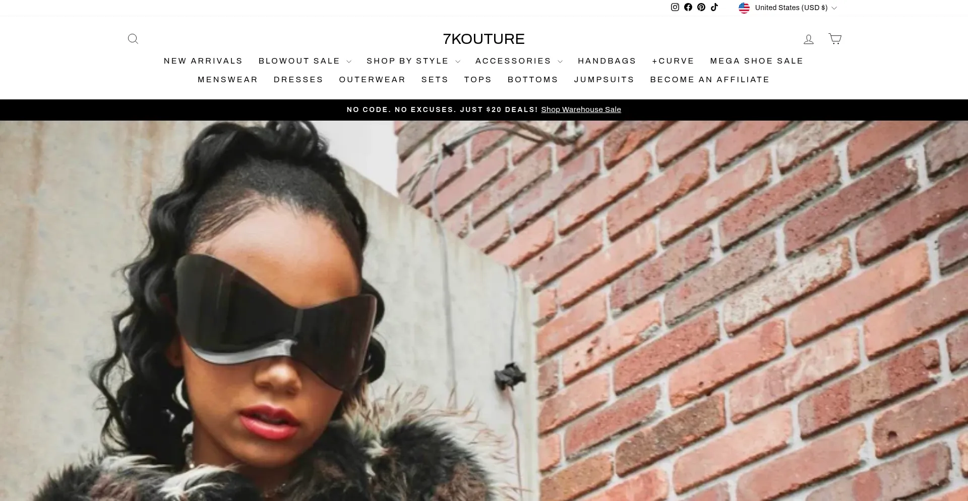 网站上存在社交媒体链接表明 7kouture.com 在社交媒体上维护官方账户,这是可信度和参与度的积极信号。