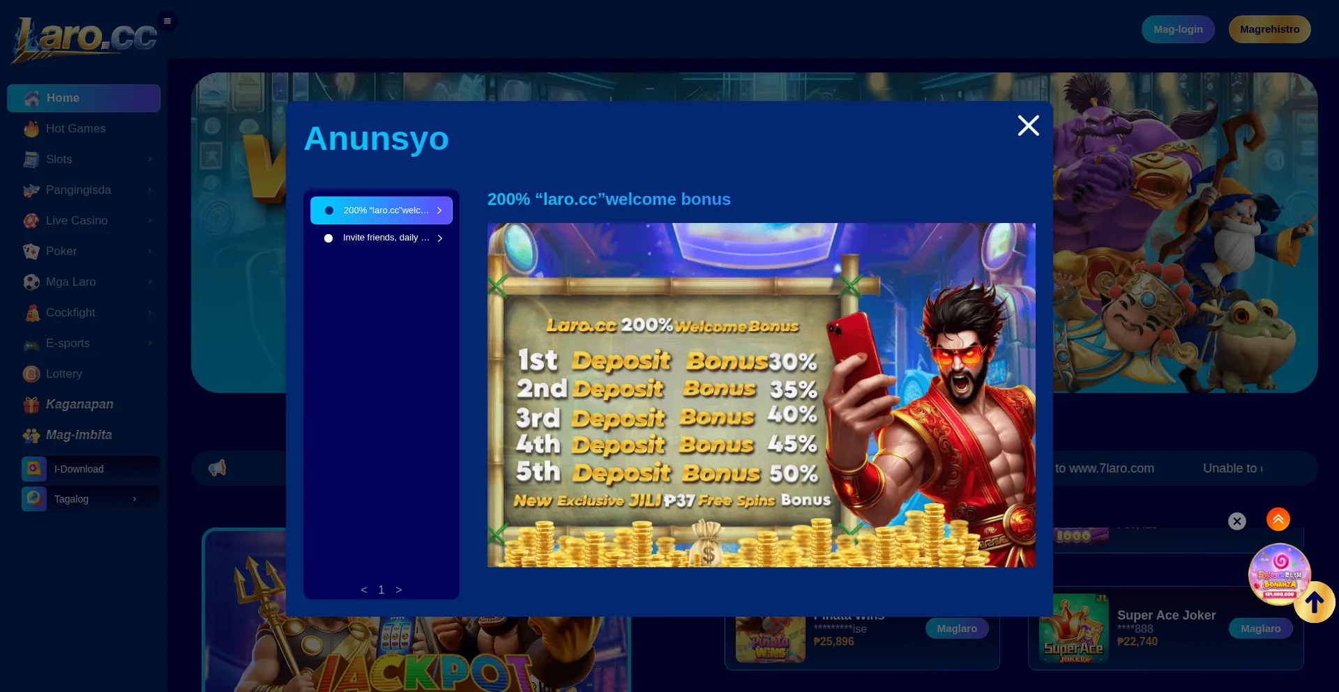 Unlock endless fun at Laro.CC! Play trending online games, live casino tables, and real-money slots—all tailored for Filipino players. Safe, fast, and 100% legit. Join now!
