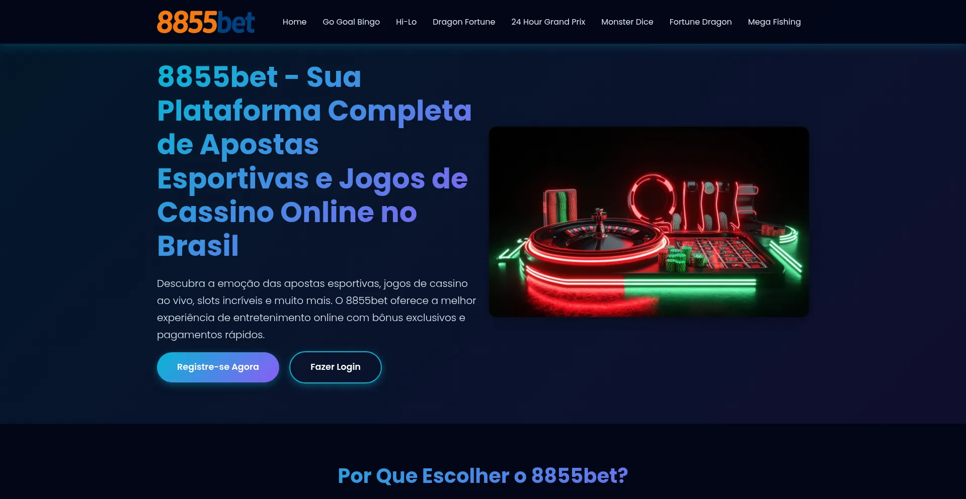 8855bet oferece apostas esportivas, cassino ao vivo, slots e jogos de pesca. Experimente Go Goal Bingo, Dragon Fortune e muito mais com bônus exclusivos.