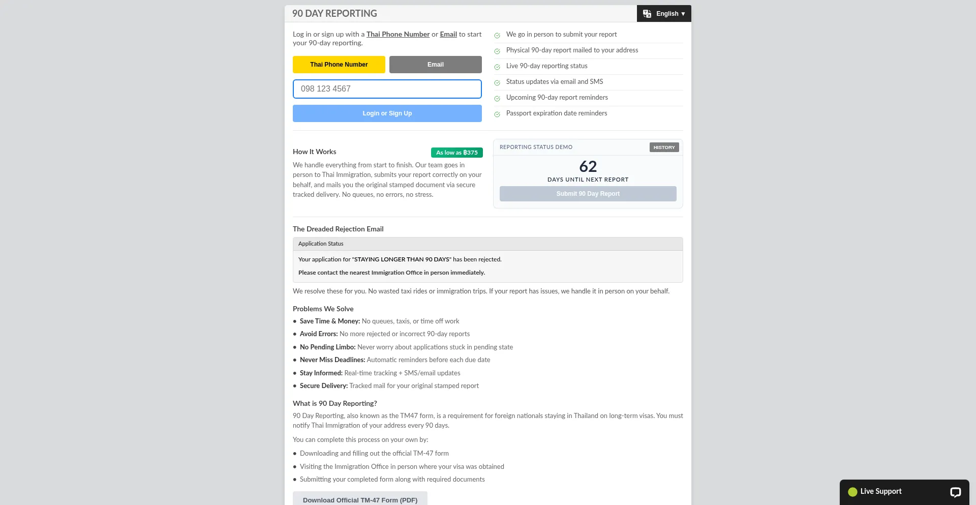 Hassle-free 90-day immigration reporting service for expats in Thailand. We handle your visa reporting requirements with secure tracked delivery.