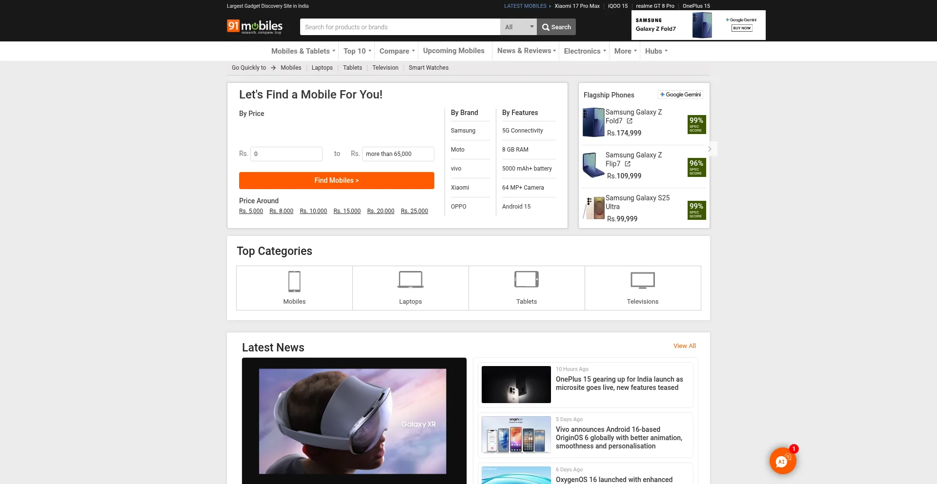 Mobile Phones | Mobile Prices in India | Online Mobile Shopping | 91mobiles.com