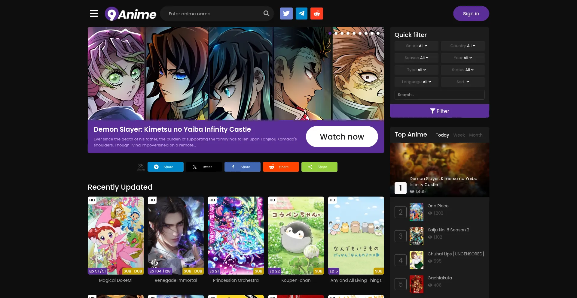 9anime is one of the best online anime streaming sites where you can watch and download free English Subbed and Dubbed.