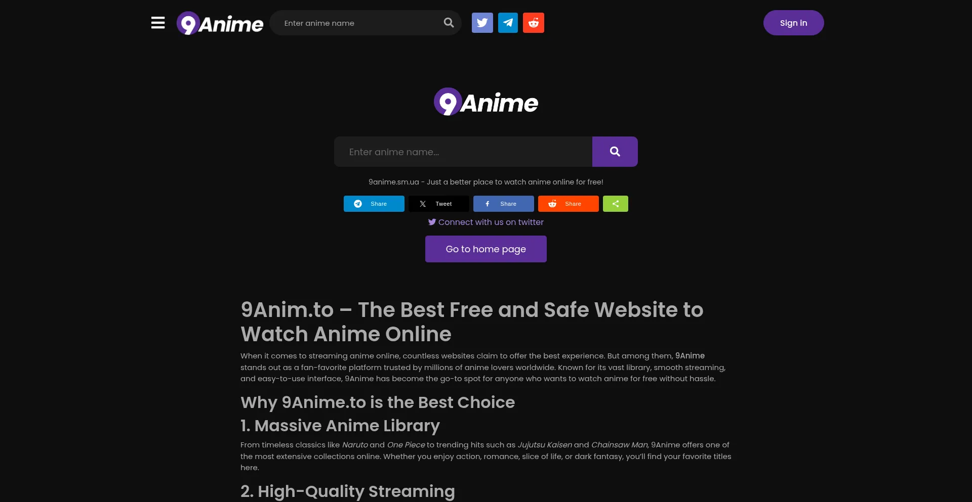 帮助保护他人,快在社交媒体上分享此页面吧!知道9anime.sm.ua的人越多,骗子就越难得逞。 通过在社交媒体上分享此页面,帮助更多人发现可靠的9anime.sm.ua吧!