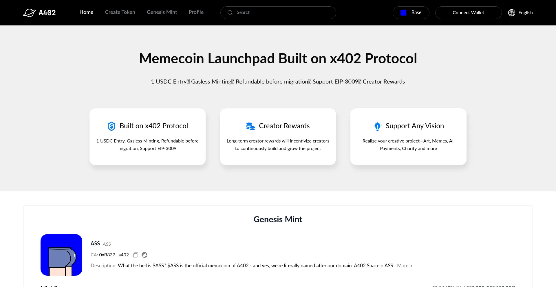 A402 - Memecoin Launchpad Built on x402 Protocol