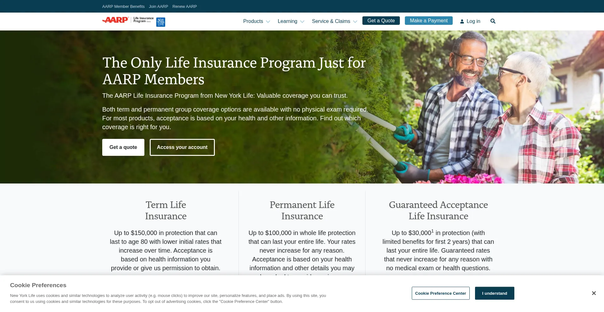 该网站实现符合GDPR或CCPA等隐私法规的cookie同意机制。这表明 aarp-lifeinsurance.com 遵守数据保护标准并为用户提供对个人数据收集实践的控制。