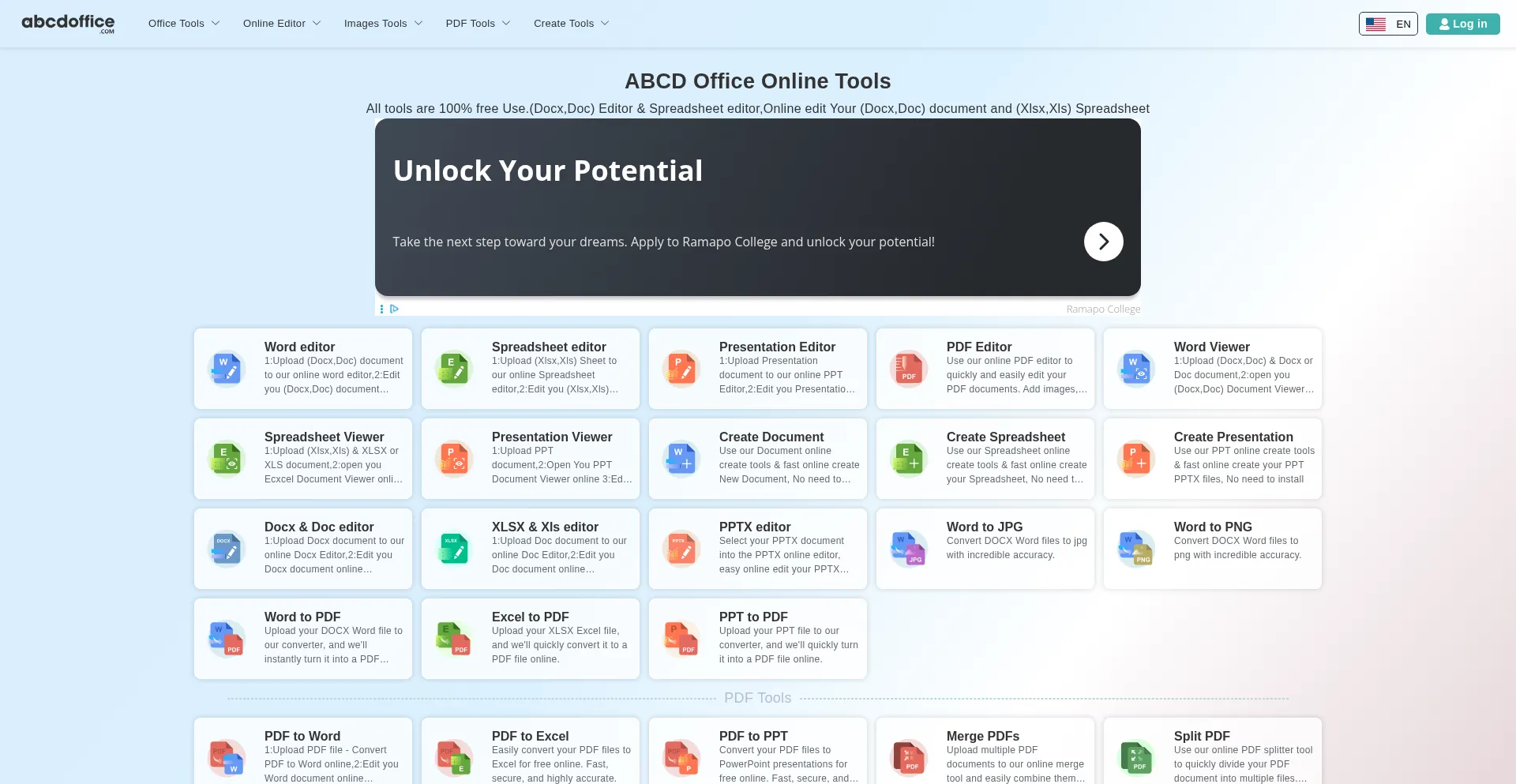 ABCD Ofiice is a 100% free all-in-one Office tool, We’ll power up your productivity with our useful Office online toolkit and online office suite.