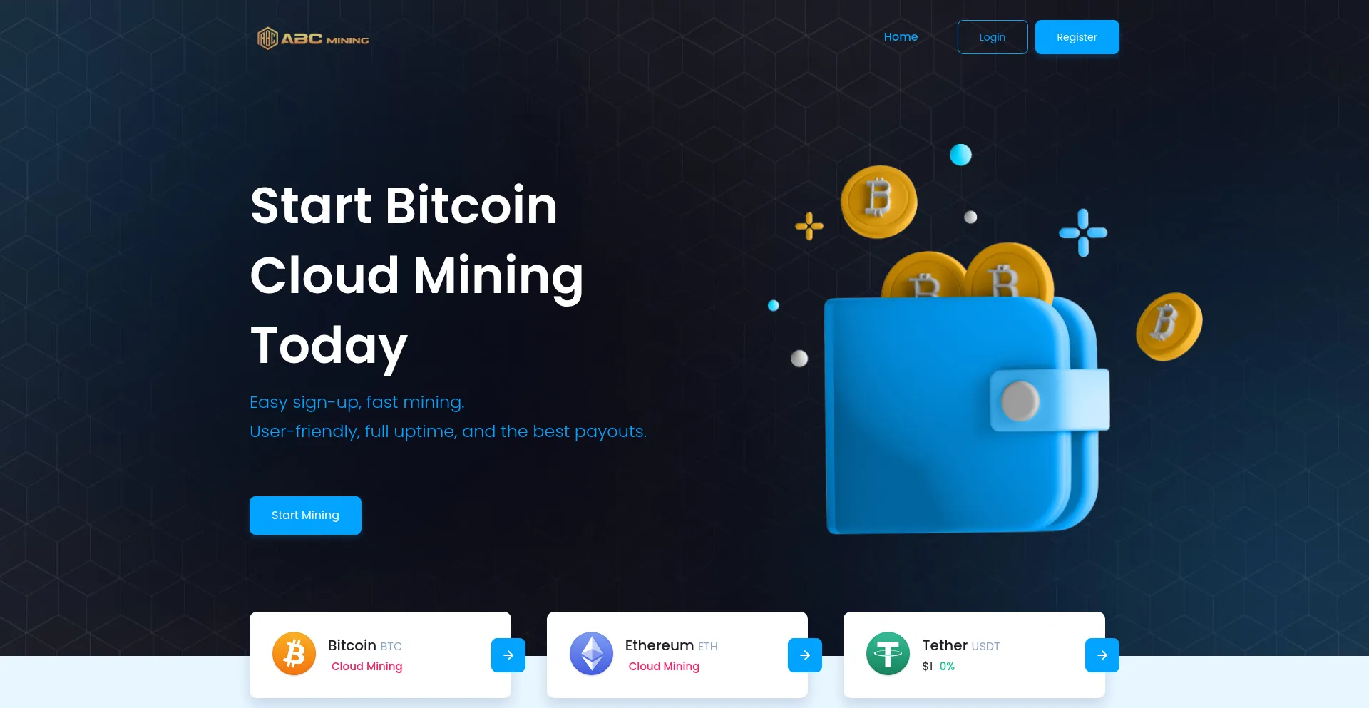网站 abcmining.pro 可能提供云挖矿服务或加密货币挖矿投资。一些平台提供合法的挖矿租赁服务,而其他平台可能使用虚假的挖矿仪表板来显示无法提取的虚拟收益。
