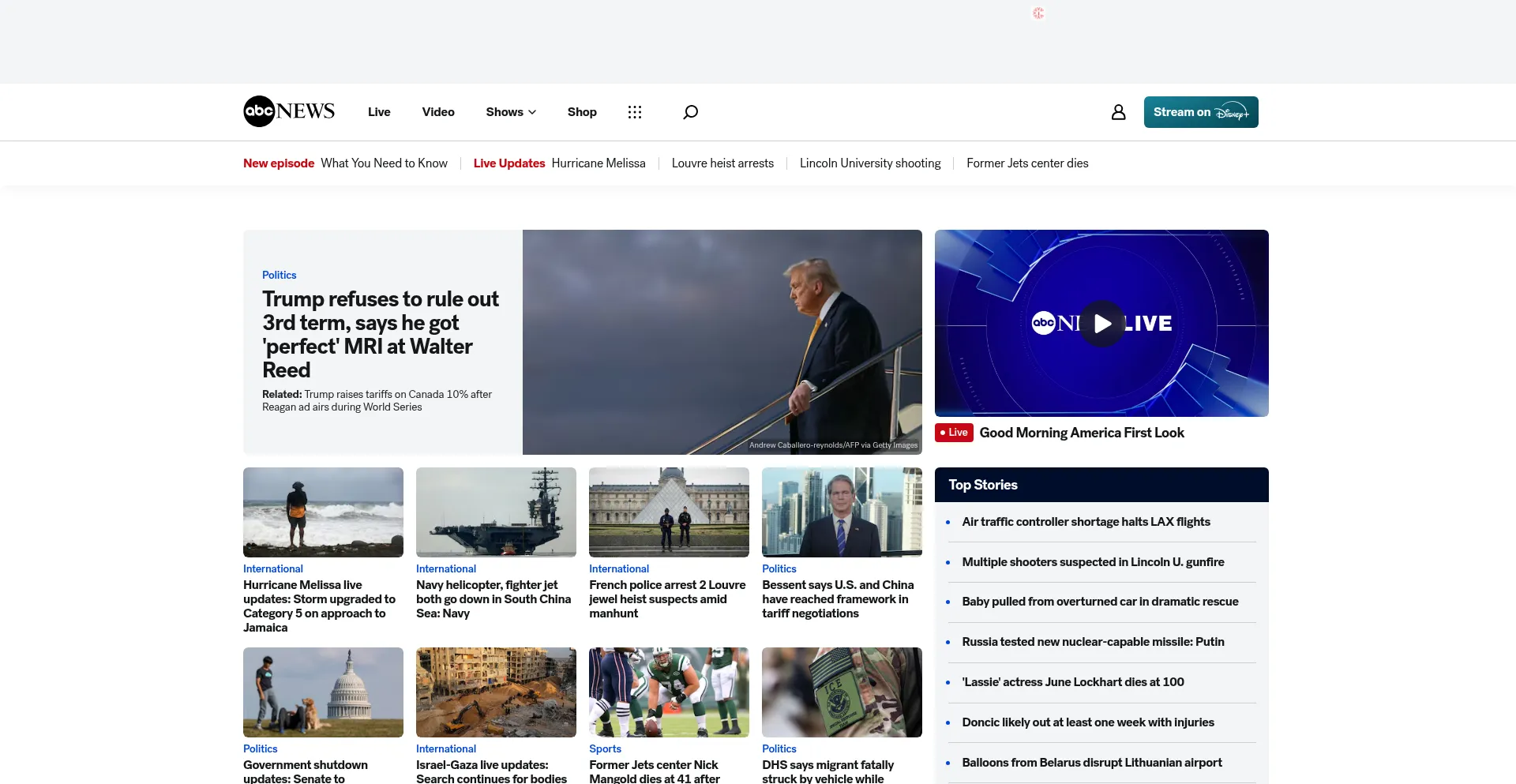 Your trusted source for breaking news, analysis, exclusive interviews, headlines, and videos at ABCNews.com