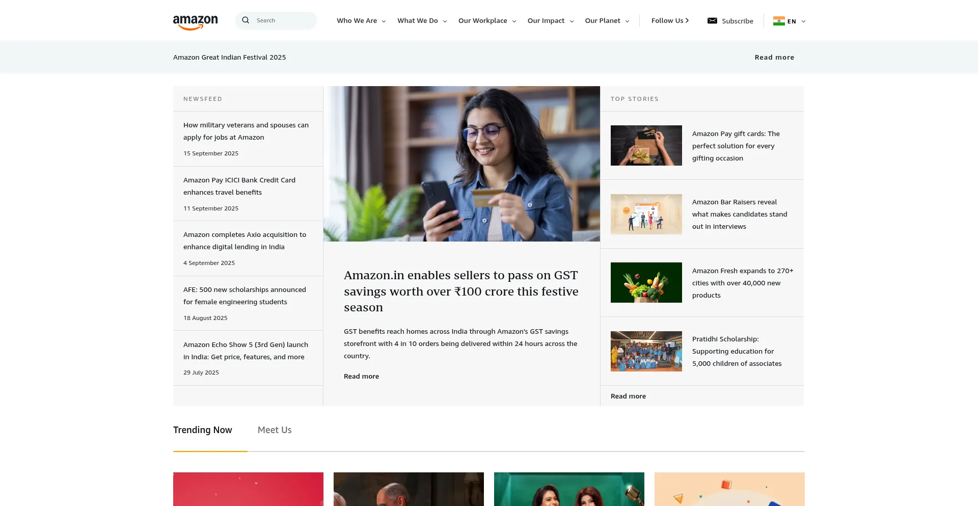 网站上存在社交媒体链接表明 aboutamazon.in 在社交媒体上维护官方账户,这是可信度和参与度的积极信号。