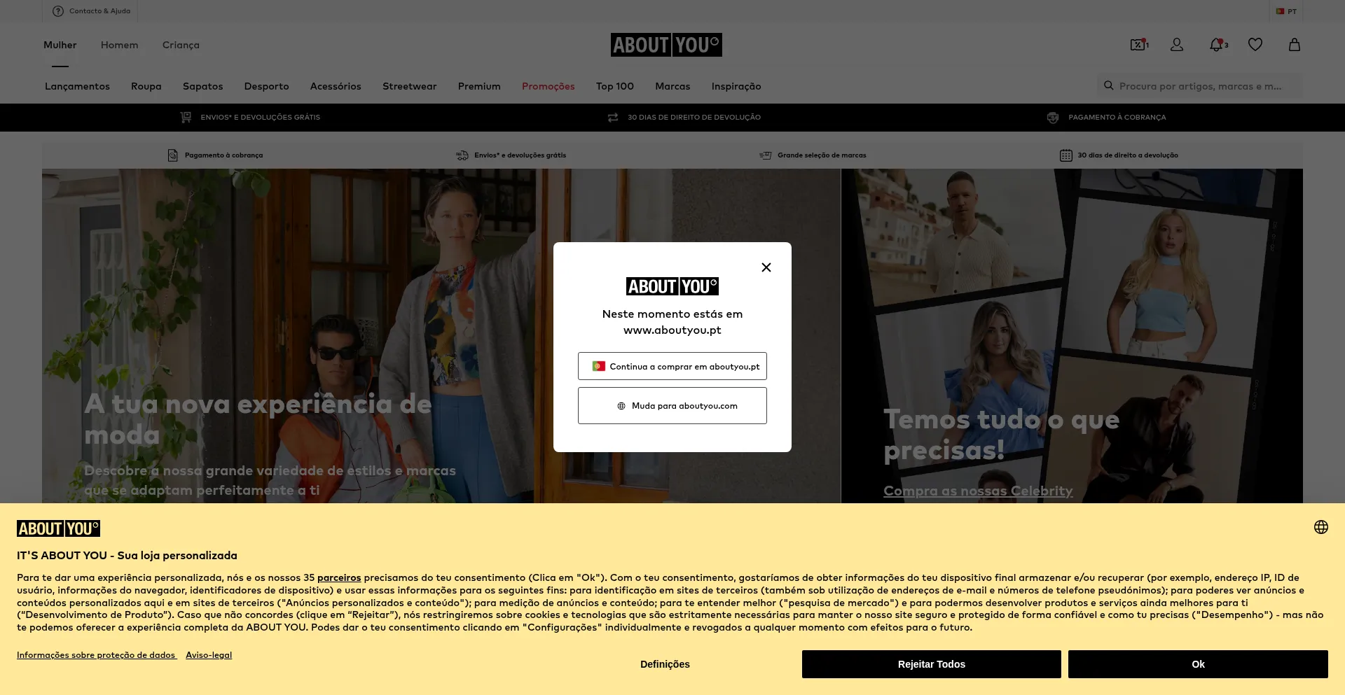网站上存在社交媒体链接表明 aboutyou.pt 在社交媒体上维护官方账户,这是可信度和参与度的积极信号。