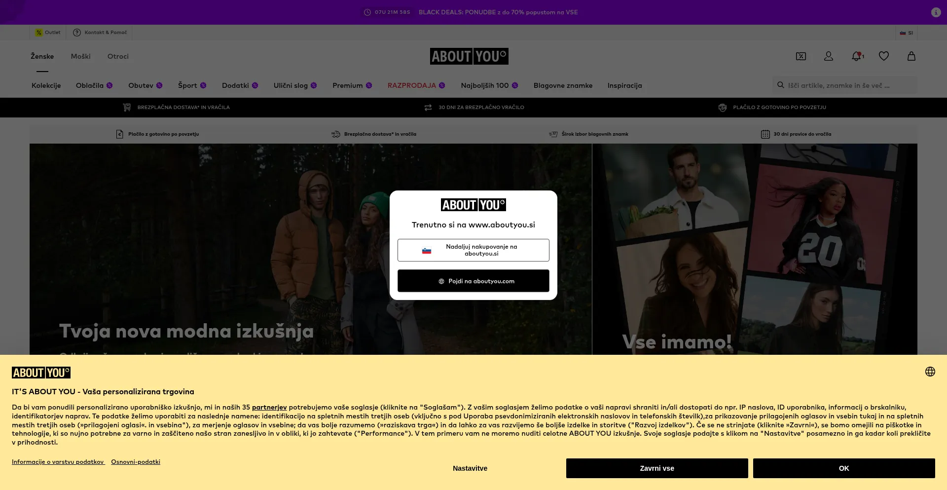 网站上存在社交媒体链接表明 aboutyou.si 在社交媒体上维护官方账户,这是可信度和参与度的积极信号。