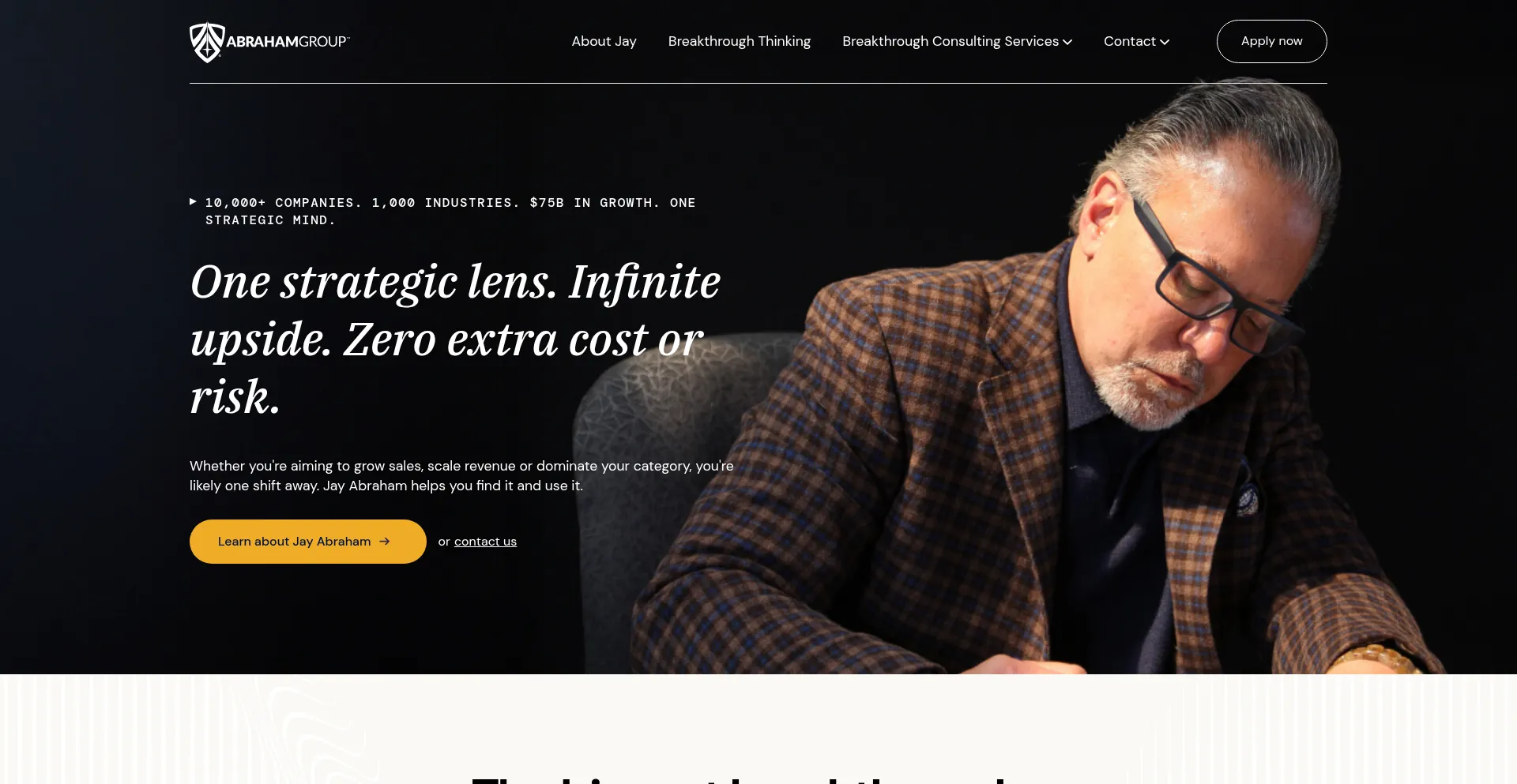 Jay Abraham is a globally trusted business growth consultant with $75B+ in growth. Strategic business consulting that multiplies profit without adding complexity.