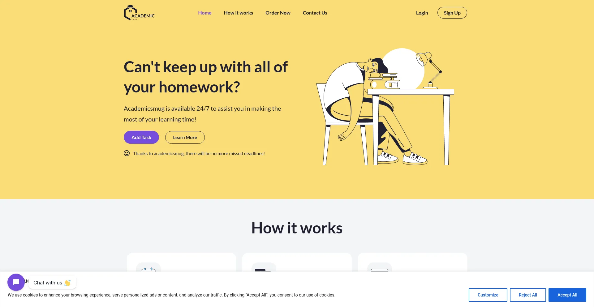 Can't keep up with all of your homework? Academicsmug is available 24/7 to assist you in making the most of your learning time! Add Task Learn More Thanks to academicsmug, there...