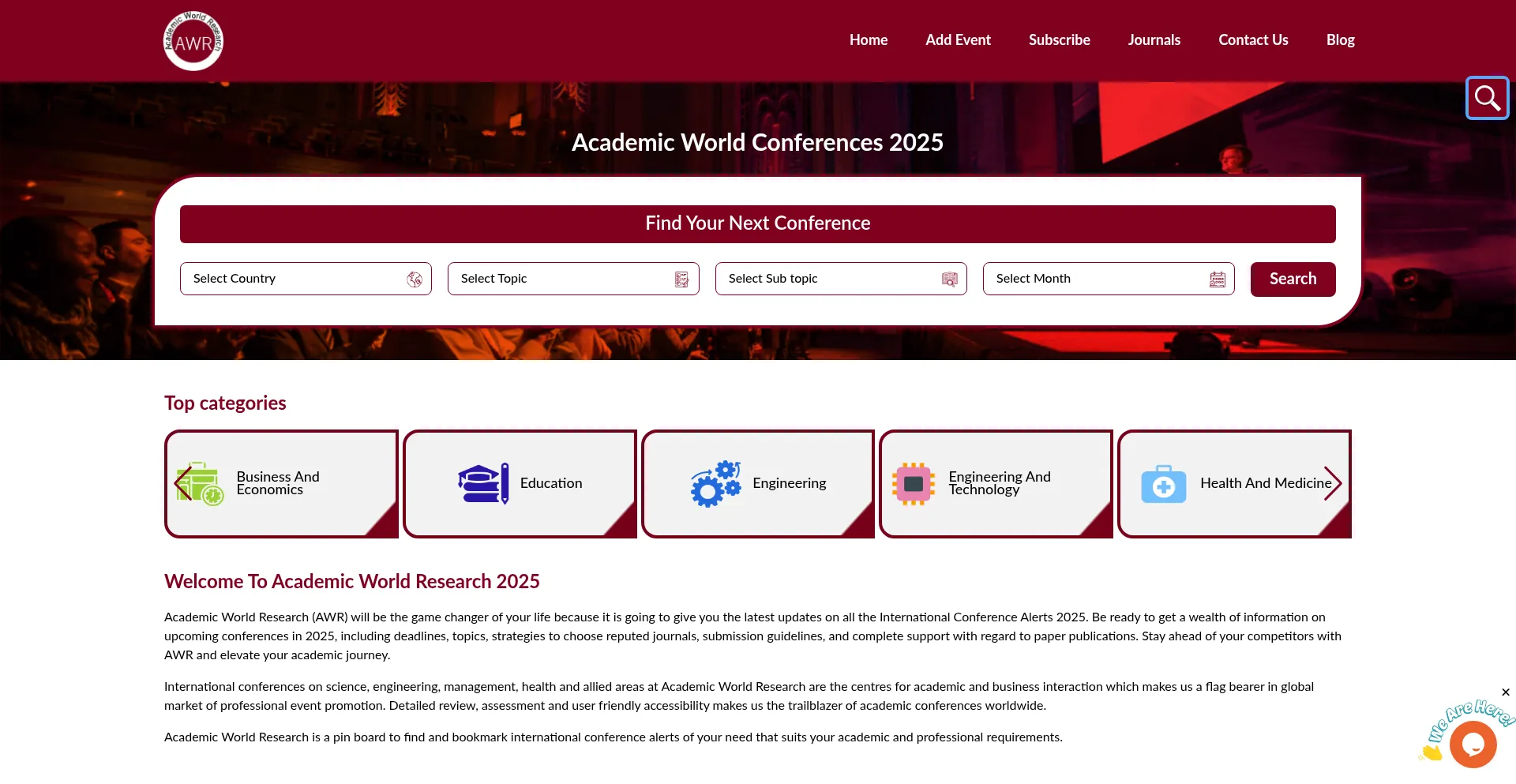 Stay updated on Upcoming International conferences in 2025 with Academic World Research, your trusted source for international conference alerts.
