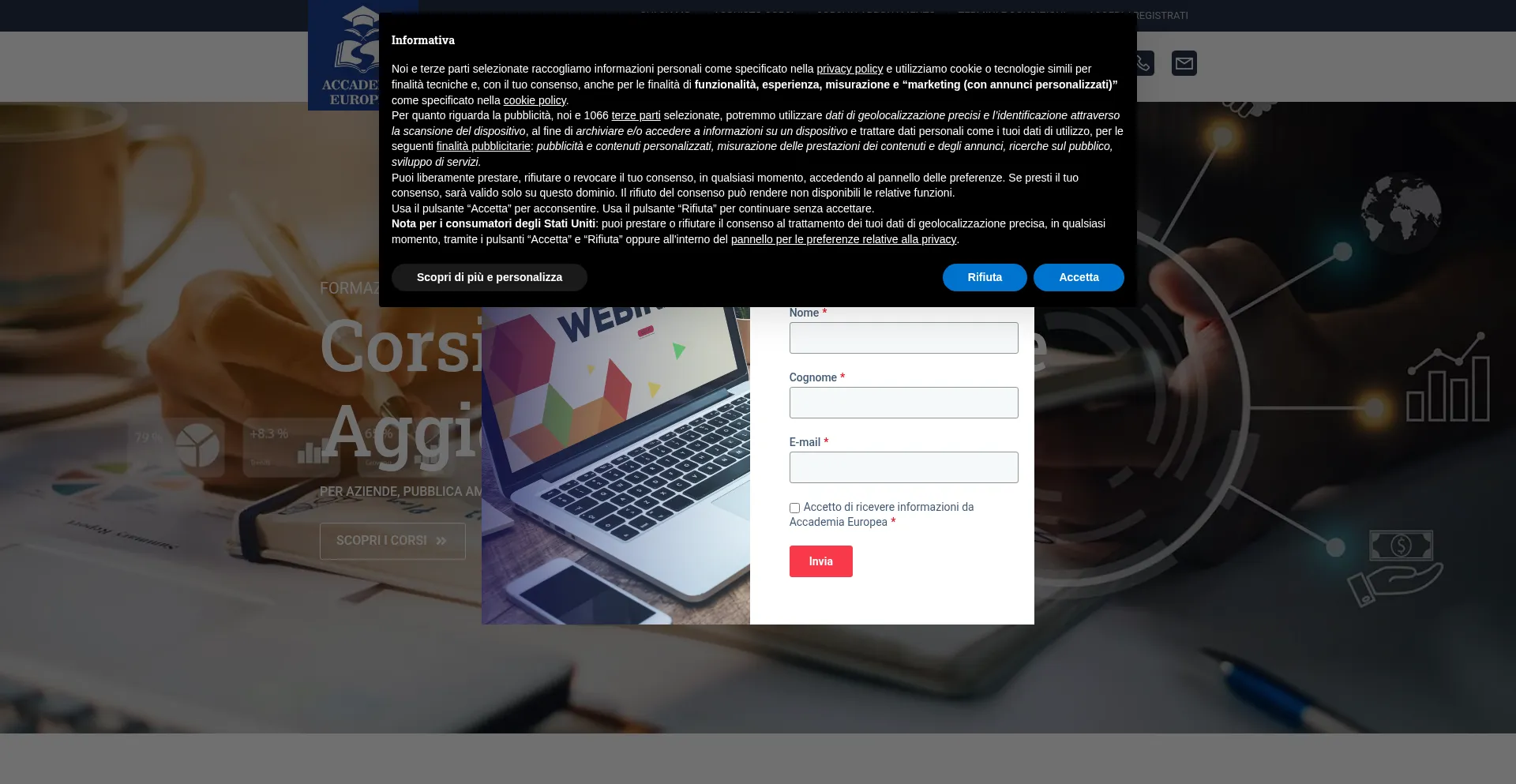 该网站实现符合GDPR或CCPA等隐私法规的cookie同意机制。这表明 accademiaeuropea.net 遵守数据保护标准并为用户提供对个人数据收集实践的控制。