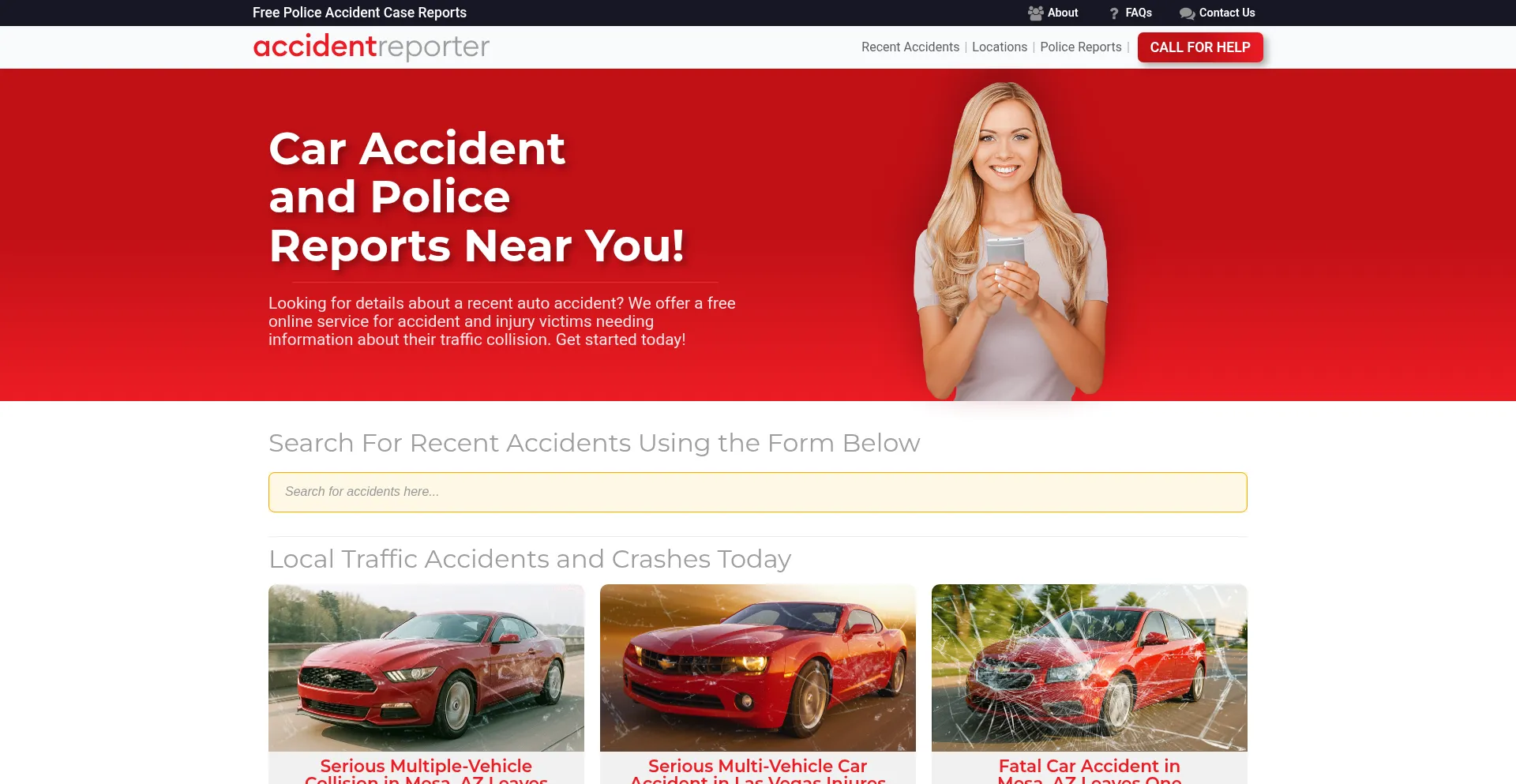 Accident Reporter delivers today's car accident reports on recent vehicle collisions near you. Find a personal injury attorney for your auto accident.